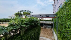 The interior design of our 5,000 sq. ft. open-air rooftop lounge is a seamless fusion of natural elegance and urban sophistication, built around a core theme of gardening and greenery. Designed to host up to 400 guests, the space is intentionally left open and airy, allowing the sky to be part of the experience and nature to take center stage.